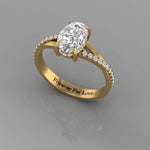 Celebrate your love with our elegant Oval Moissanite and Diamond Engagement Ring. Featuring a dazzling 1.5 carat Charles & Colvard Moissanite center stone, this ring is a stunning symbol of commitment and sophistication. The oval-shaped moissanite, measuring 9x6 mm, is set in a 14k gold band adorned with a twisted diamond design, adding a touch of timeless elegance.