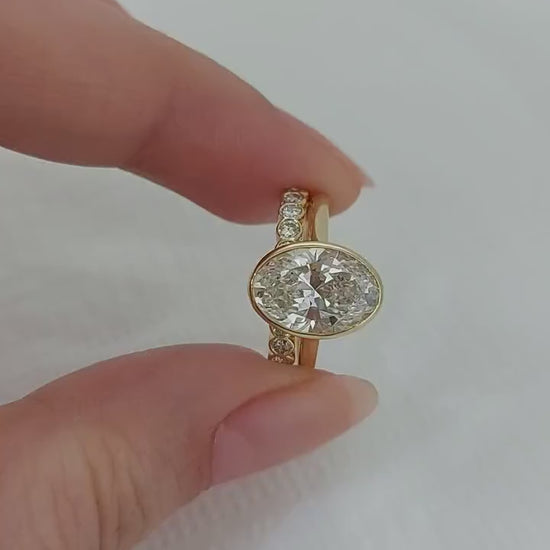 3.1Ct D VVS1 Oval Cut Lab Grown Bezel Diamond Bridal Set Forever For Love